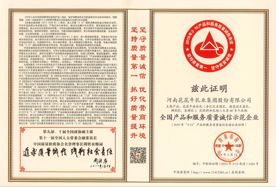 全國產(chǎn)品和服務質量誠信示范企業(yè)