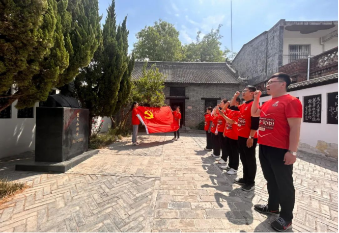 在董天知將軍的雕像前,參加活動的黨員整齊列隊(duì),懷著無比崇敬的心情,莊嚴(yán)地舉起右手,重溫入黨誓詞?!拔抑驹讣尤胫袊伯a(chǎn)黨……”鏗鏘有力的誓言響徹故居上空,久久回蕩。這不僅是一次對革命先烈的莊嚴(yán)告慰,更是黨員們對自己初心使命的再次堅定與強(qiáng)化。