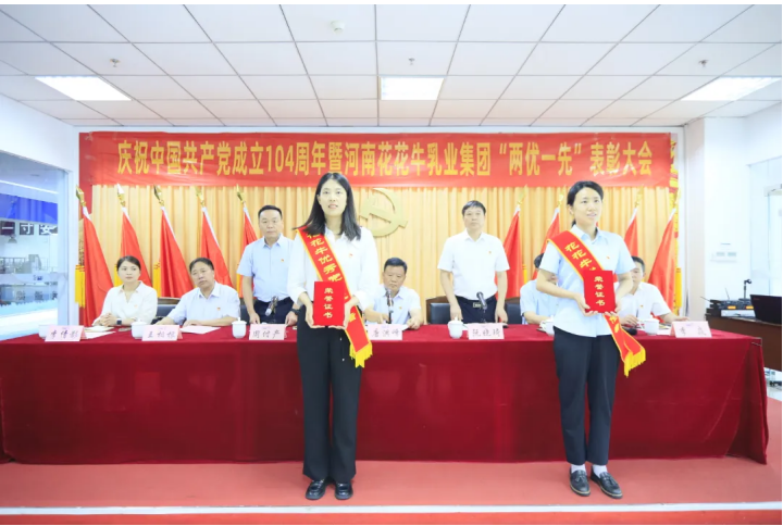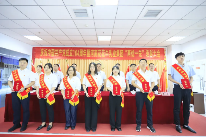 河南花花牛乳業(yè)集團召開慶祝中國共產(chǎn)黨成立104周年暨“兩優(yōu)一先”表彰大會