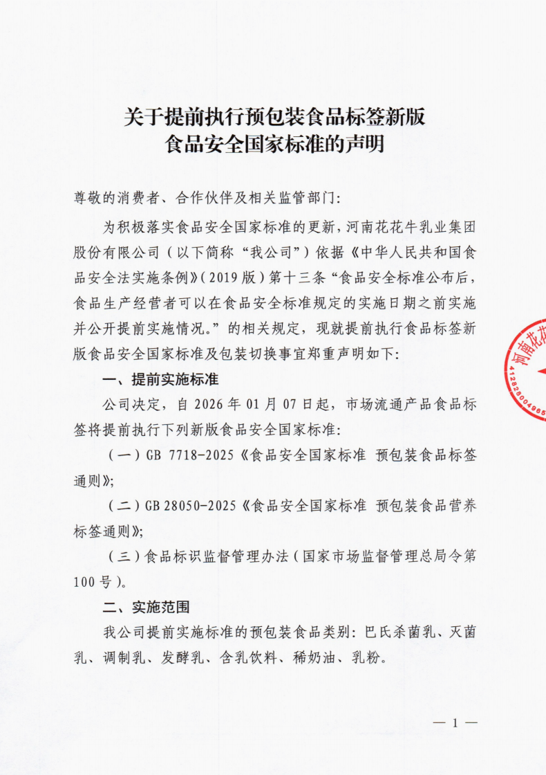 關(guān)于提前執(zhí)行預(yù)包裝食品標(biāo)簽新版食品安全國(guó)家標(biāo)準(zhǔn)的聲明